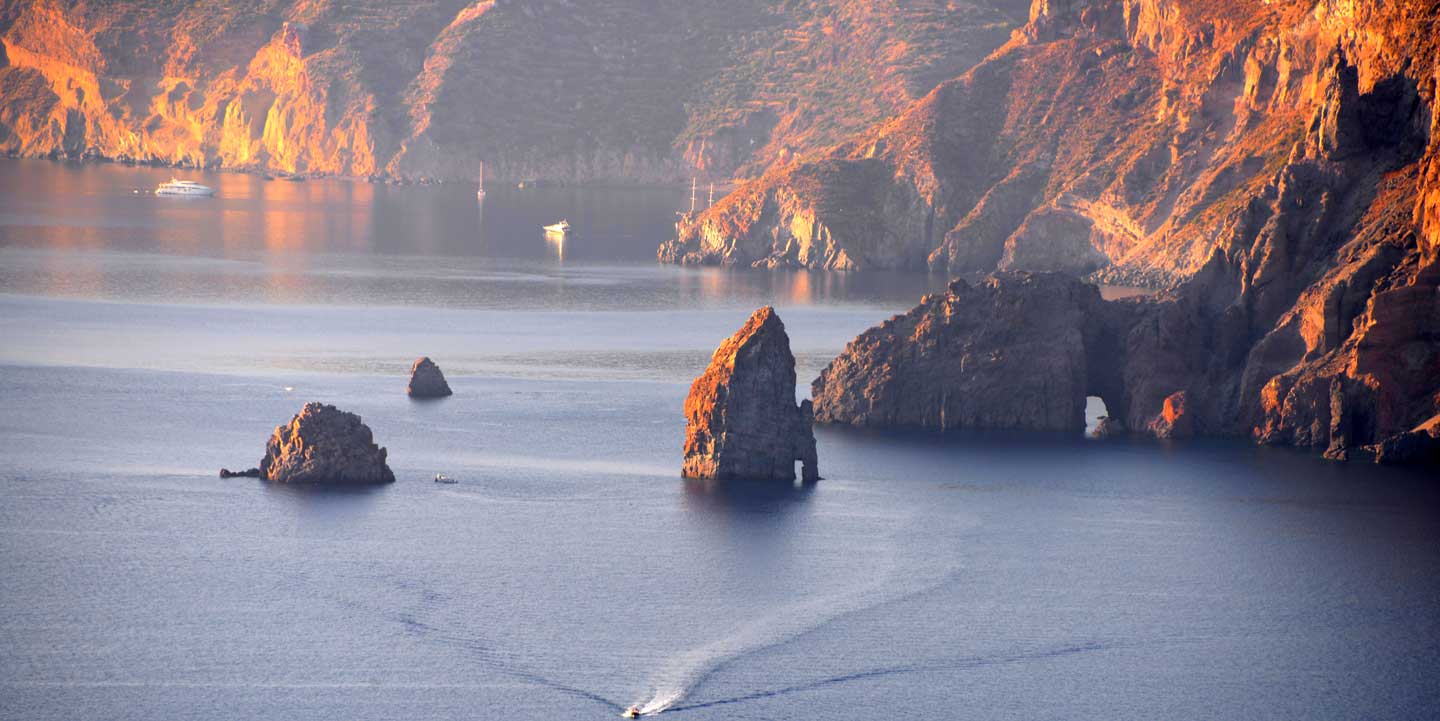 L’azzurro del mare screziato del verde dell’allume; i neri fondali vulcanici degli anfratti marini; la varietà di una vegetazione che, ora rigogliosa, ammanta di viti dorate i crinali della lussureggiante Salina, ora brulla e a tratti inospitale, colora di solfuree iridescenze i profili, unici, di Vulcano; la superficie del mare color indaco, che scintilla al tramonto di mille luci di fuoco; la maestà imperiosa dello Stromboli e le sue pendici scabre, capaci di ispirare il genio di indimenticati cineasti; le calette, celeberrime, di Calajunco e Pollara, che paiono sottrarre i fortunati bagnanti alle fatiche quotidiane, immergendoli in un’atmosfera di impalpabile di immota bellezza.
